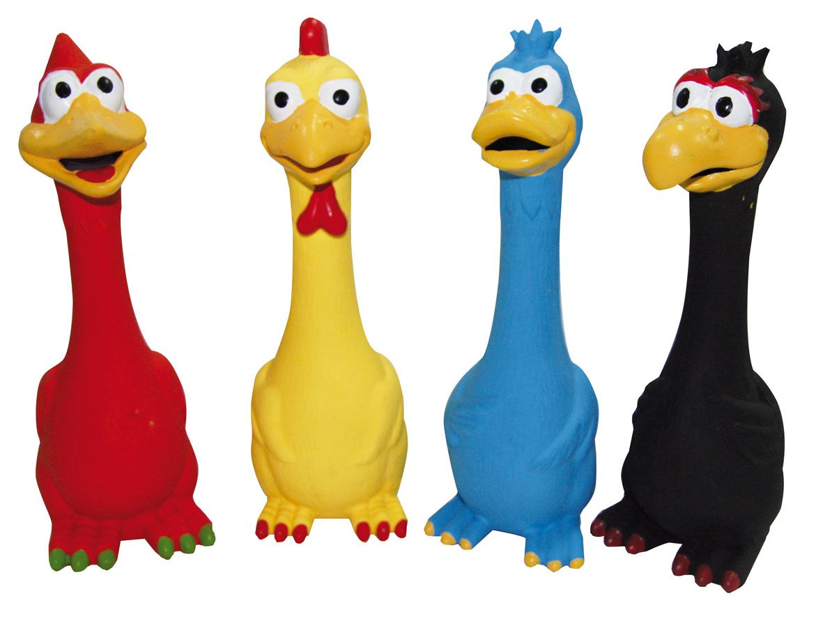 SP animal en latex avec son, H=20cm en 4 couleurs ass. rouge,jaune,bleu,noir